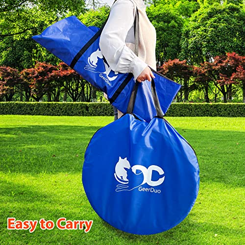 GeerDuo Dog Agility Training Equipment, Obstacle Agility Training Kit for Dogs, Includes Tunnel, 27 Woven Poles, Adjustable Hurdle, Jump Ring, Break Box and Carry Bag (Blue, L)