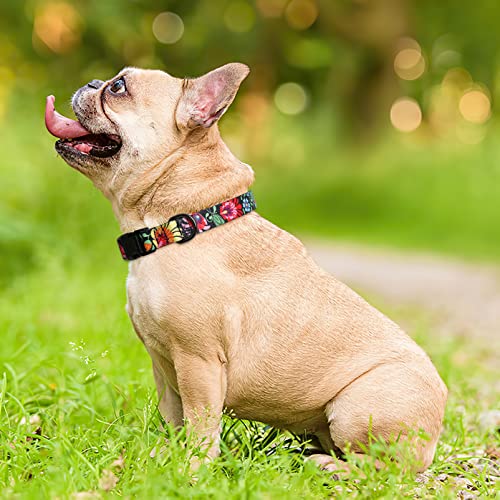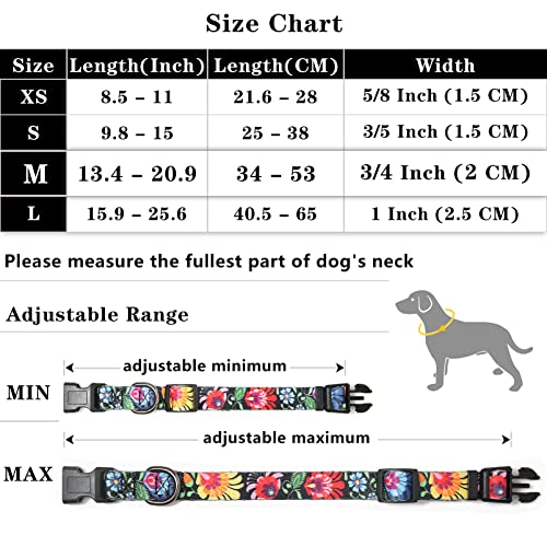 HEELE Dog Collar, Dog Collar for Puppies, Small, Medium, Large Dogs, Patterned Dog Collars, Adjustable, Comfort, Robust Dog Collar, Wild Flowers, M