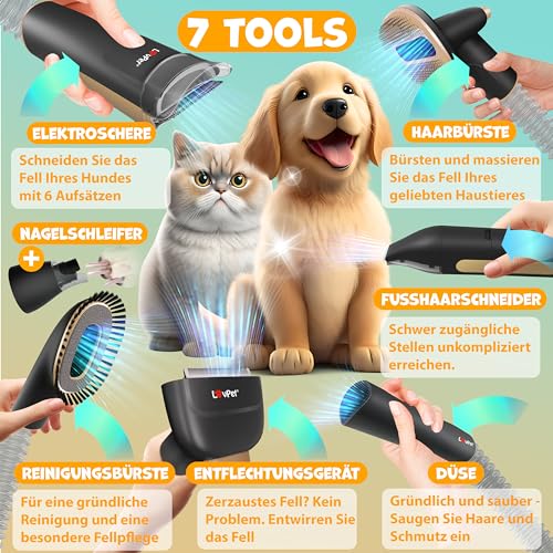 Powerful performance: Experience unparalleled suction power with the Lovpet Premium 7-in-1 pet care set that effortlessly removes dirt, dust, mites, hair, fur, allergens, germs and much more. This powerful suction power not only ensures surface cleaning, but also creates a healthy environment for your dog.