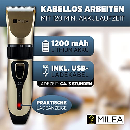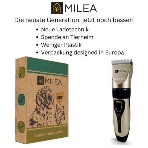 Milea Battery Pet Hair Clipper Short & Long Hair – Especially Quiet Dog & Cat Clipper – Wireless Pet Hair Trimmer – Gentle Dog Hair Trimmer – Donation Action Animal Shelter