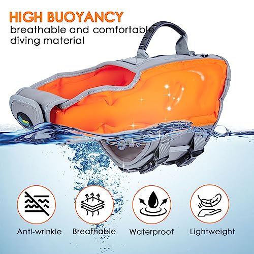 Secure rescue deal with: the sturdy rescue deal with on the again of the life jacket is straightforward to grip and is usually a nice assist, whether or not the canine must swim or be lifted out of the water.
