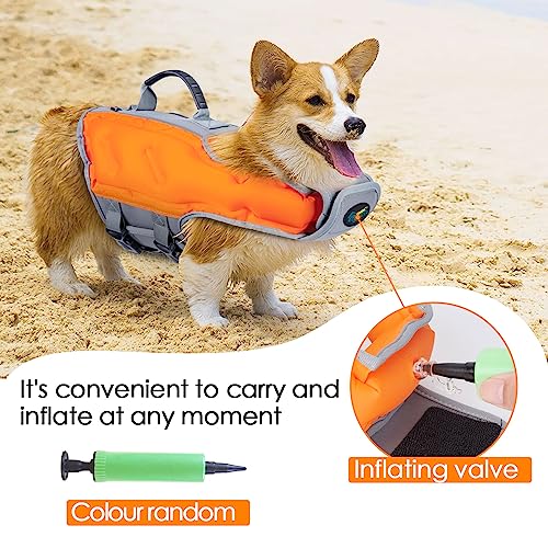 Innovative design: dog life jacket is made of high-quality Oxford cloth and diving material, provides exceptional durability and waterproof. The inflatable design is lightweight, reduces pressure on the pet in the water and provides significant buoyancy. We also include a hand pump for added convenience.
