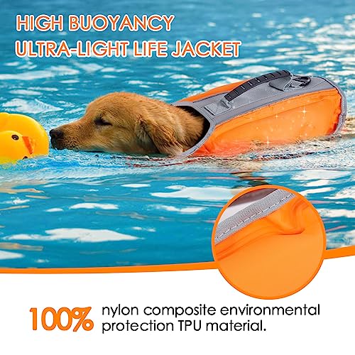 Ownpets Inflatable Dog Life Jacket, High Buoyancy, Lightweight Dog Life Jacket for Swimming, Boating, Adjustable Pet Rescue Protector with Reflective Strips and Rescue Handle (Large)