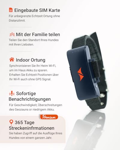 ✔️Battery life: set the transmission interval your self and thus the battery life! Select between 1 – 10 minutes and whether or not to activate the “Wifihome Zone”. Three choices for battery life: 1) Your canine carries the tracker on a regular basis and is on the go constantly (12.5 – 15.5 h battery) – 2) Tracker is completely on the canine however Wifihome is activated (at 1 hour monitoring outdoors, 23 hours wifihome: 26 – 28 h battery) – 3) The tracker is eliminated indoors (at 1 hour monitoring, 23 hours standby. TimTime: 6-7 days)